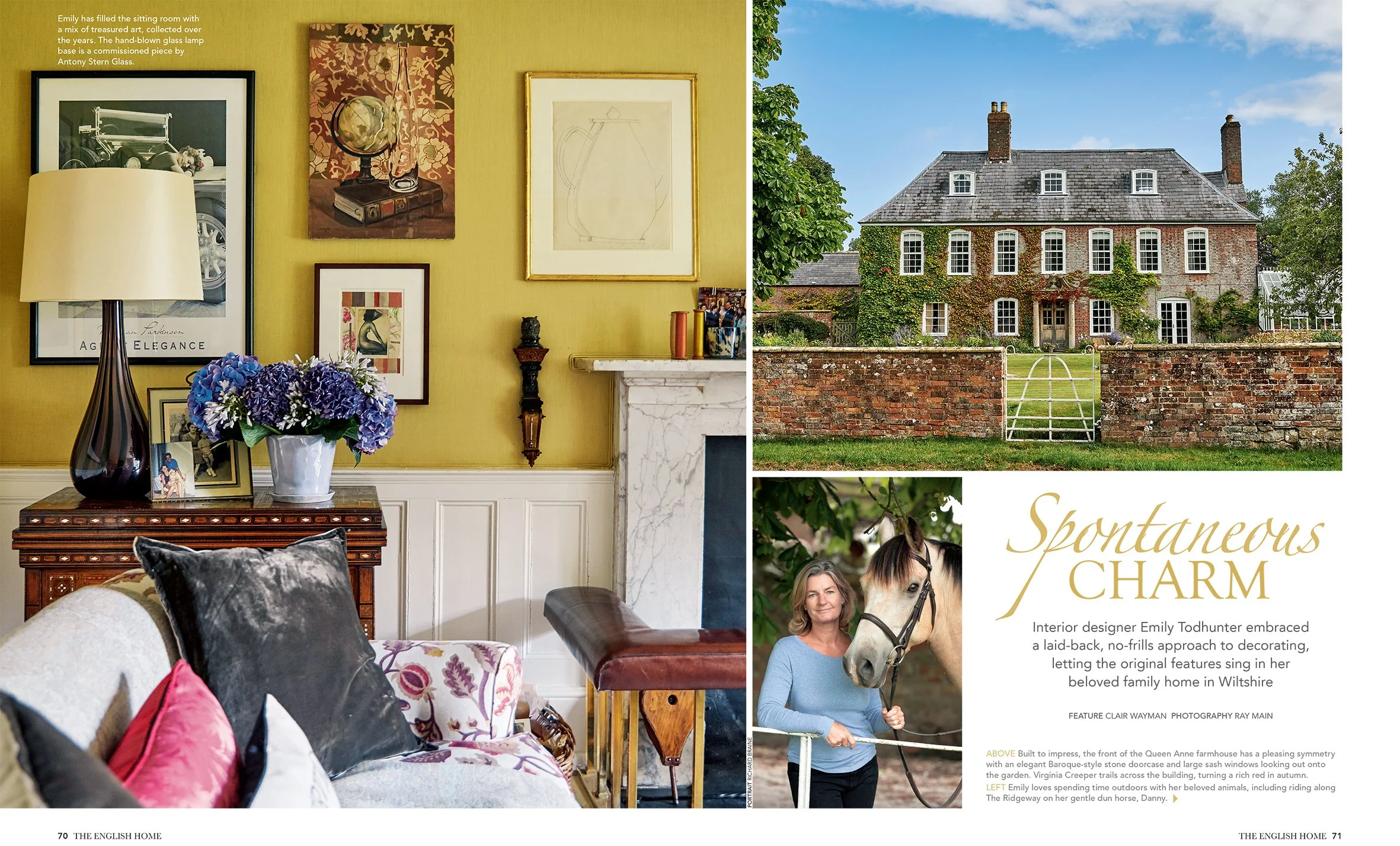 Interior designer Emily Todhunter’s Queen Anne farmhouse on the edge of the Marlborough Downs is gloriously relaxed and understated. As Emily points out, there wasn’t a single considered thought that went into the decoration of the interiors. Everything is very unintentional and maybe that’s part of the loveliness – the house has a famously scruffy charm. Living in this wonderful idyllic spot Emily loves nothing better than riding her horse or walking her dogs along The Ridgeway, through unspoilt countryside. This is a story of a much loved family home, an informal approach to decorating and the beauty of spontaneity.